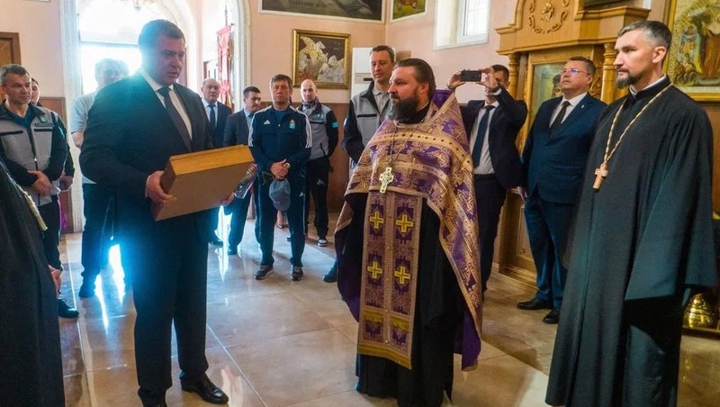 Астраханская делегация побывала в православном храме святого благоверного великого князя Александра Невского. Его икона сопровождает участников мотопробега во время всего пути.